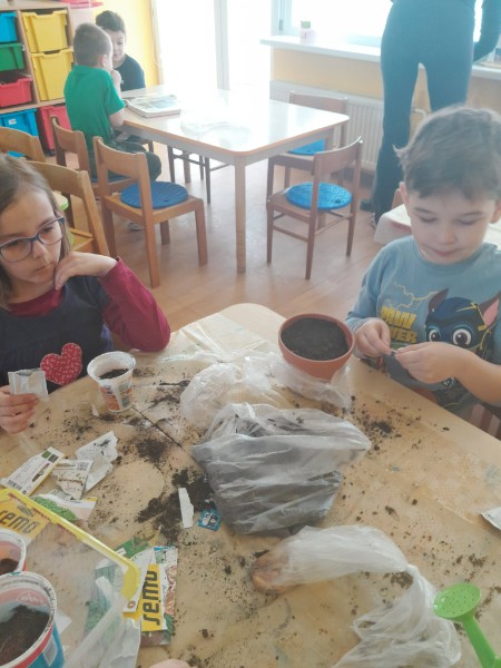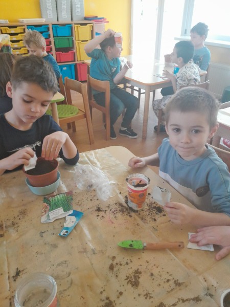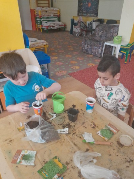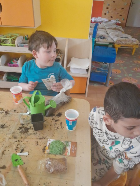 Sadenie žeruchy a pažítky.