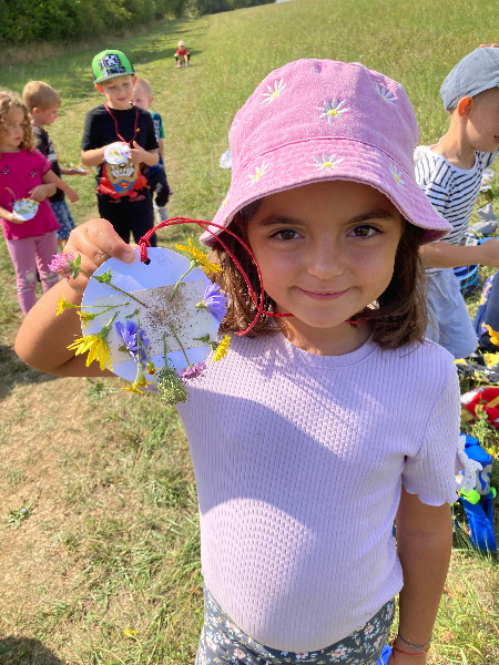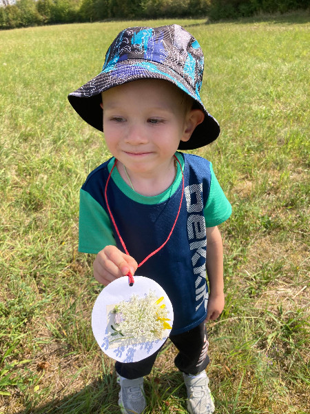 Turistická vychádzka, ktorú naši predškoláci absolvovali bola zameraná na šport, chôdzu, všímanie si a rešpektovanie prírody, spoznávanie a pomenovávanie rastliniek, z ktorých si každý zhotovil medailónik.