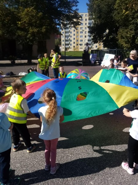 V septembri sme začali v športovo-bezpečnostnom duchu. Týždeň mobility sa v našom meste končil "Hravou ulicou", kde sme sa zúčastnili aj my. V športe sme pokračovali i v ďalšom týždni. Pod vedením inštruktorov z Penguin šport clubu sme sa "skamarátili" s vodou. Učili sme sa orientovať sa vo vode, základy plaveckých štýlov. Už teraz sa tešíme sa na ďalší kurz.
