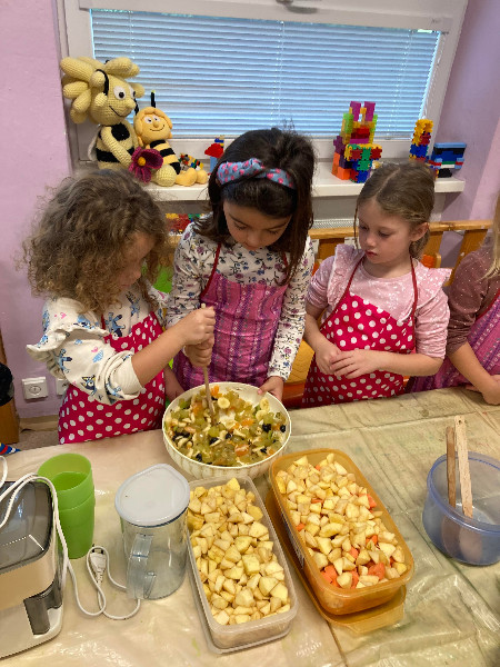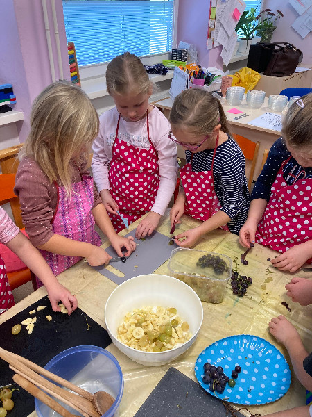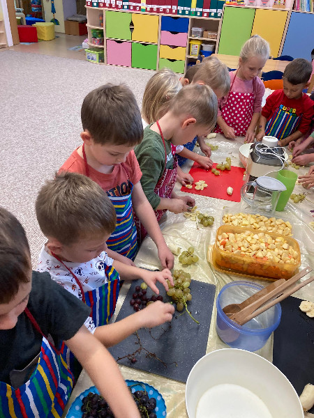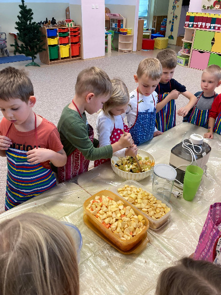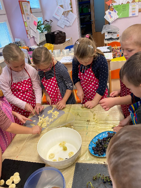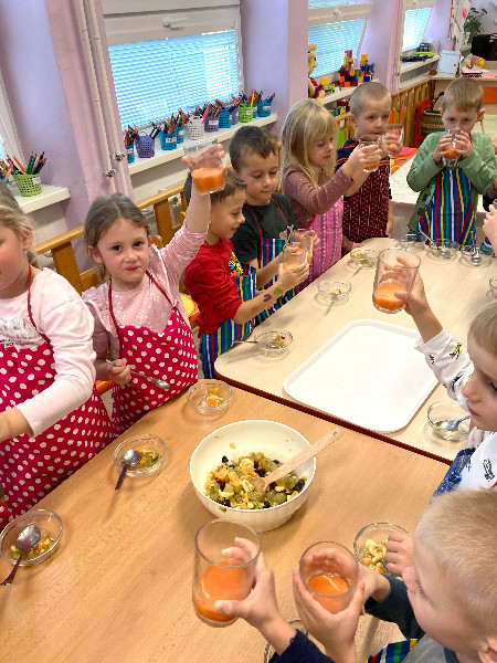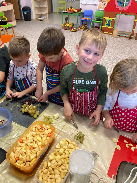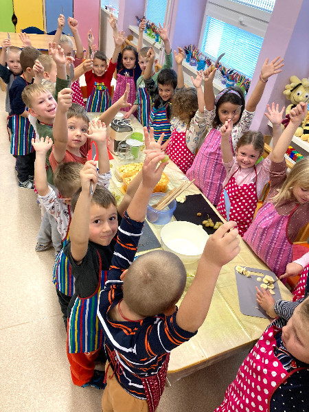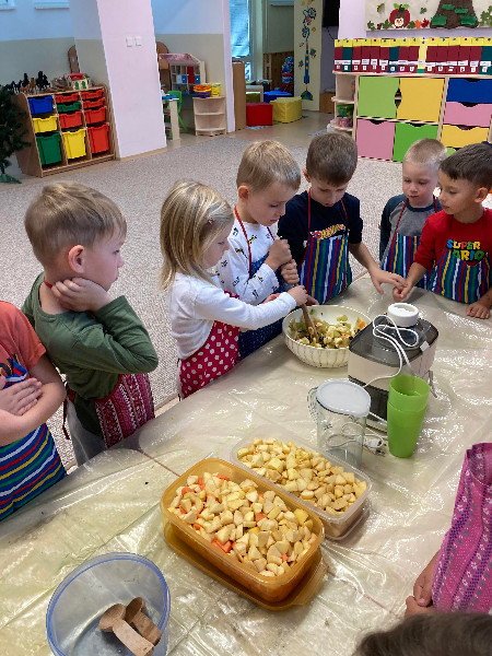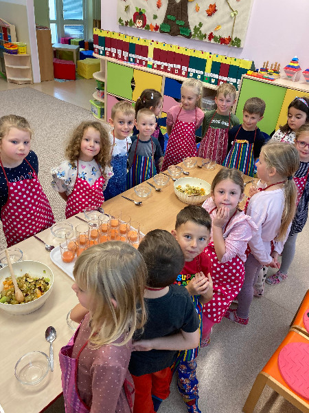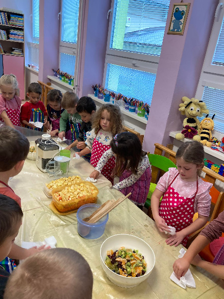 Predškoláci z tr.č.1 MŠ Komenského nelenili, na kuchárov sa zahrali, zeleninku, ovocie ochutnávali a zdravé šťavy so zeleninovými a ovocnými šalátikmi pripravili. V závere si na nich všetci s radosťou pochutili a veľa dobrého pre svoje zdravie urobili.