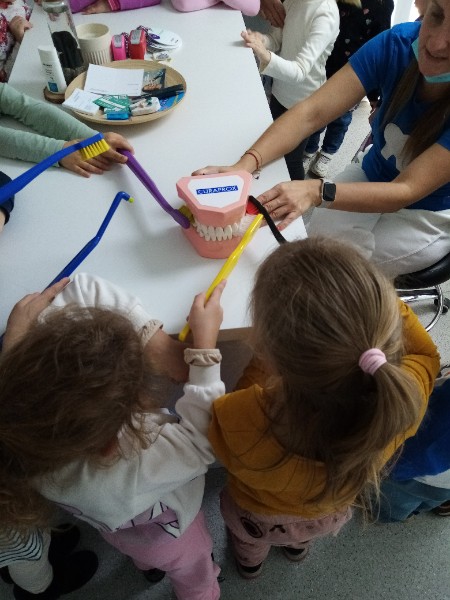 V novembri sme si hovorili o starostlivosti o naše telo a tam patria aj zuby. Navštívili sme tetu dentálnu hygieničku, s ktorou sme si zopakovali, ako sa najlepšie starať o zúbky, aby boli krásne a zdravé.