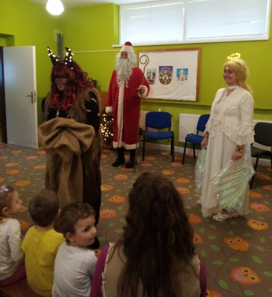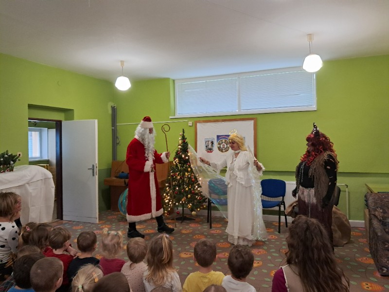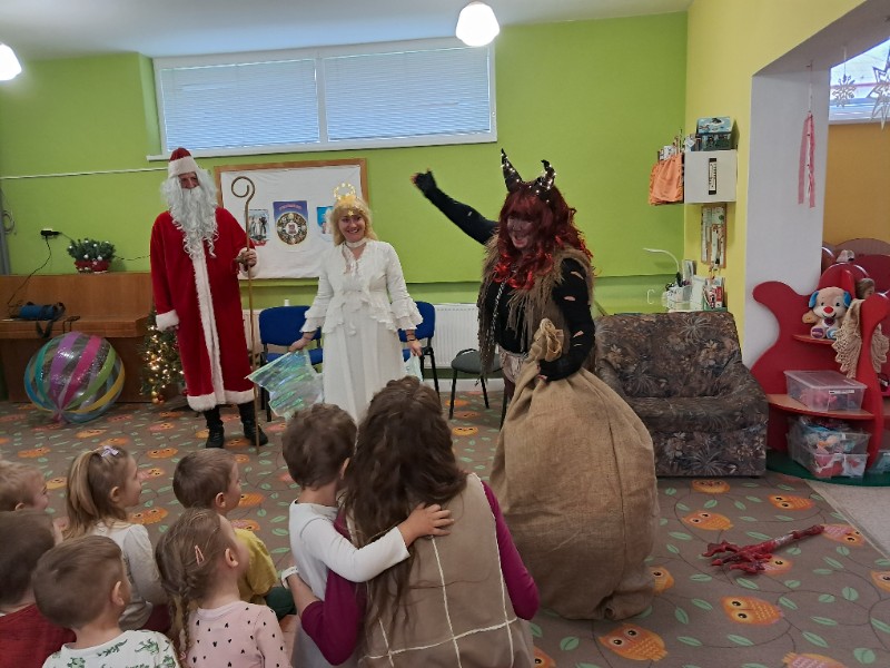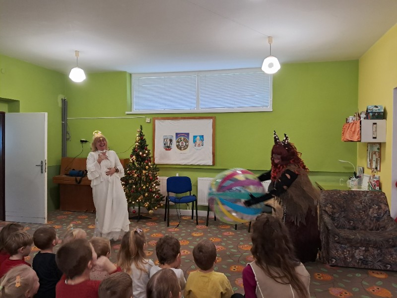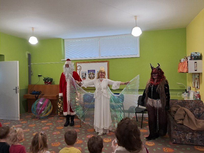 8.12. sme sa aj my dočkali a prišiel k nám do škôlky Mikuláš s anjelom a čerticou Alicou. Spoločne nám ukázali, že hrať sa s loptou je určite lepšie, ako hrať sa na mobile.