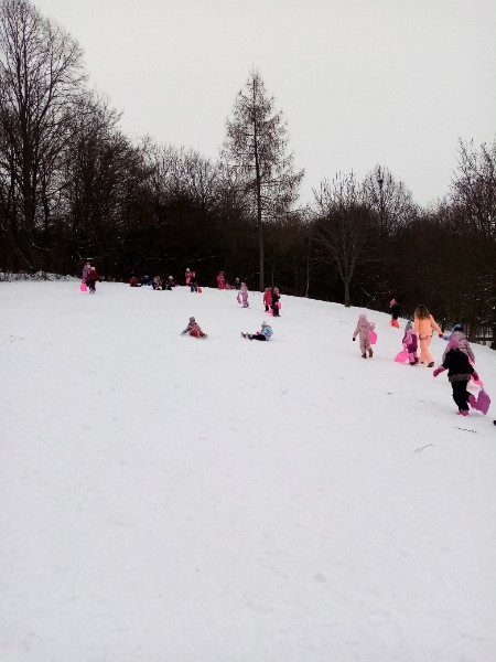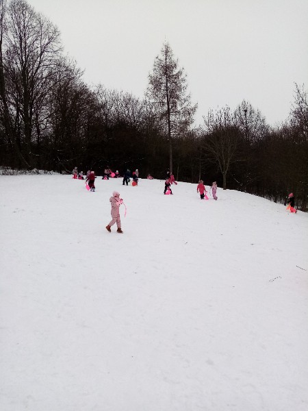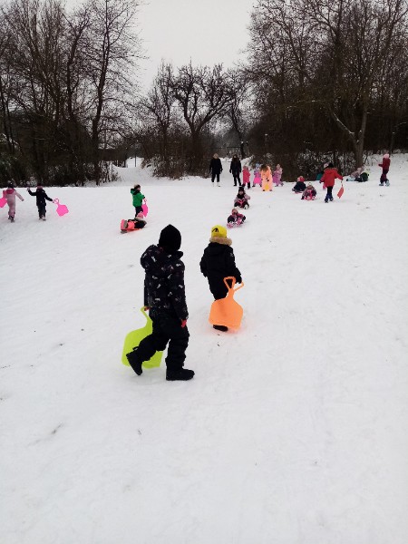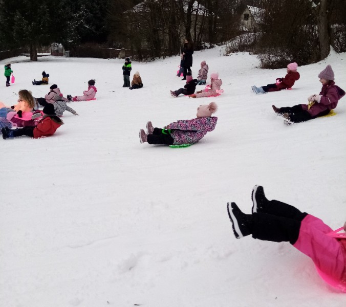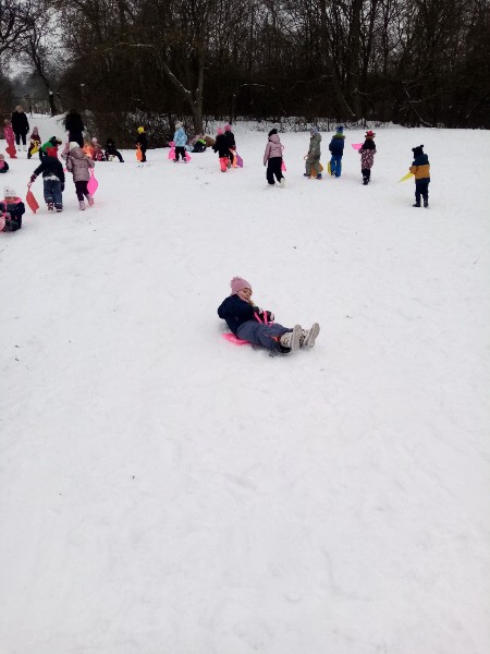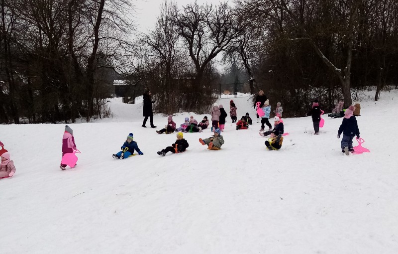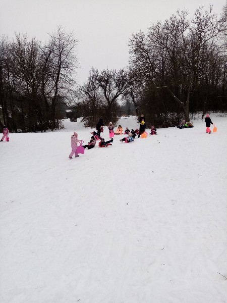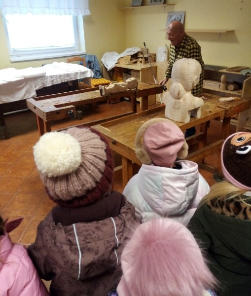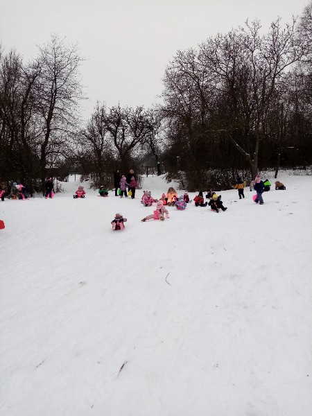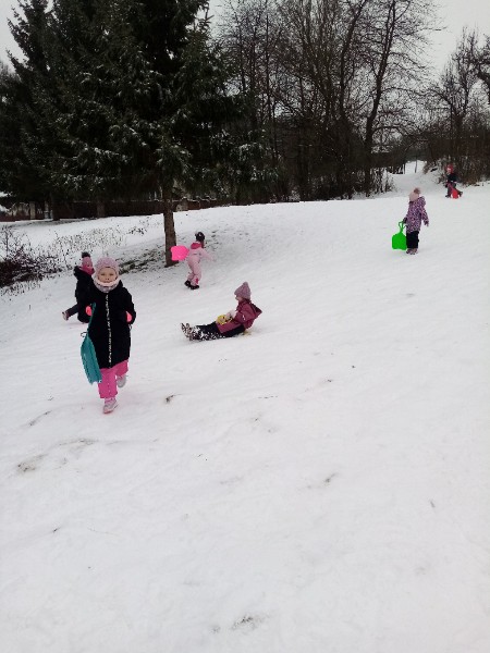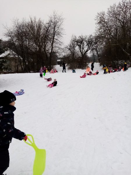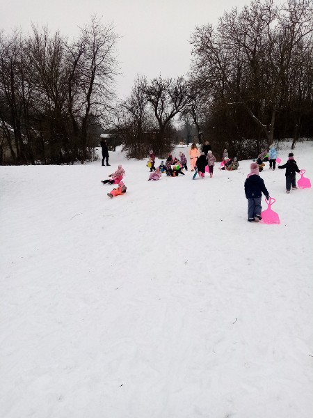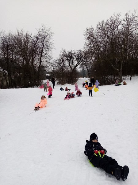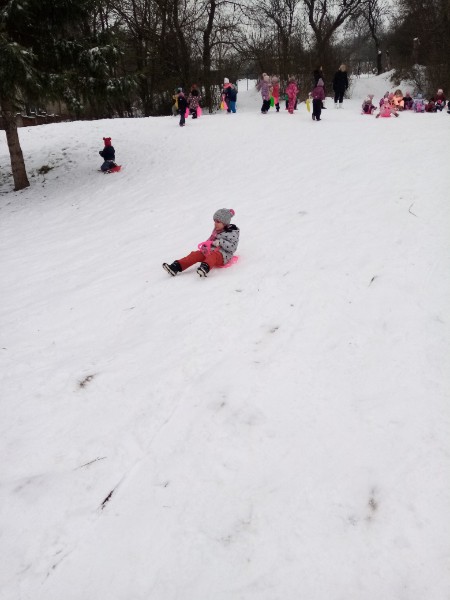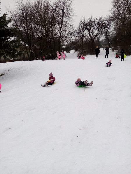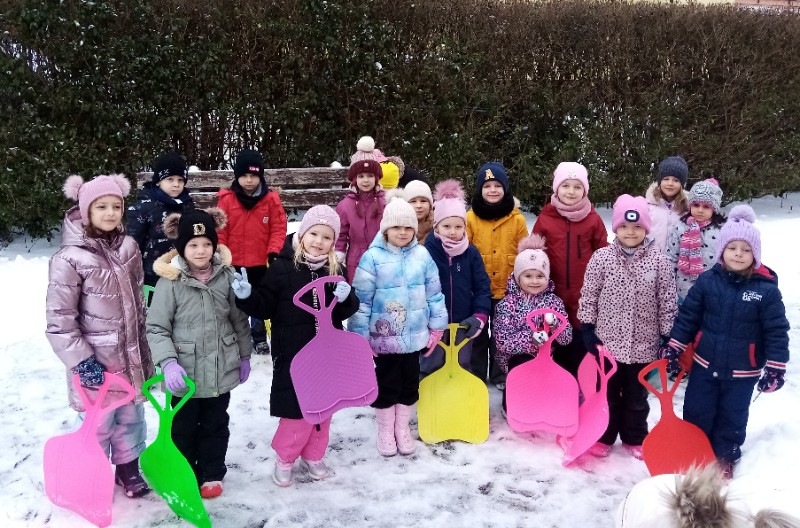 Konečne napadol sneh, tak sme mohli zobrať lopaty a hurááá na kopec. Hoci sme sa kĺzali iba dva dni, bolo nám úžasne. Veríme, že ešte nasneží a my sa budeme môcť vyšantiť. Robili sme i malý pokus zvaný Sopka. Na konci mesiaca sme navštívili výstavu kočíkov, bábik a hier. Stretli sme tam aj ujov rezbárov, ktorí nám ukázali, ako sa tvorí socha z dreva.